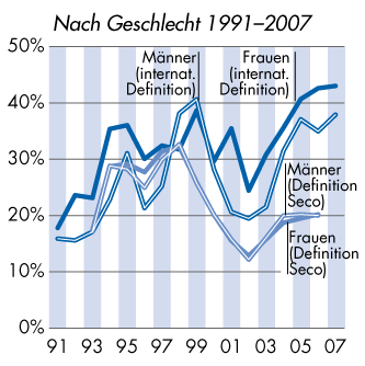 Langzeitarbeitslosigkeit in der Schweiz – Nach Geschlecht 1991–2007