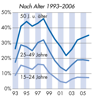 Langzeitarbeitslosigkeit in der Schweiz – Nach Alter 1993–2006