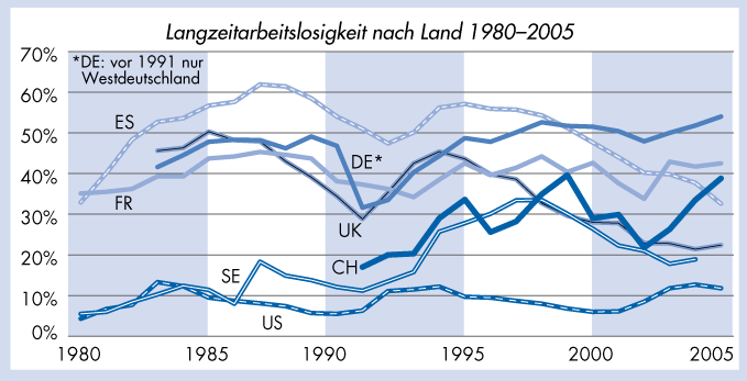 Langzeitarbeitslosigkeit nach Land 1980–2005