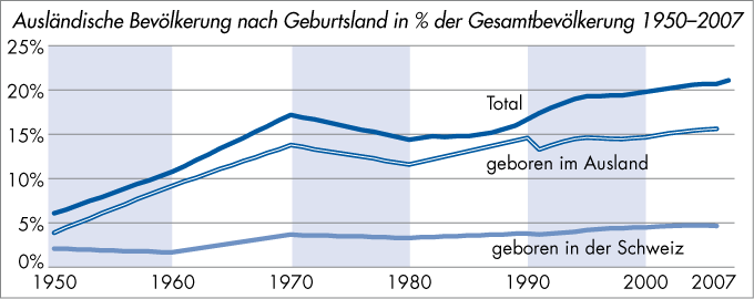 Ausländische Wohnbevölkerung nach Geburtsland in % der Gesamtbevölkerung 1950–2007
