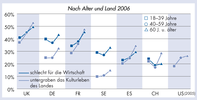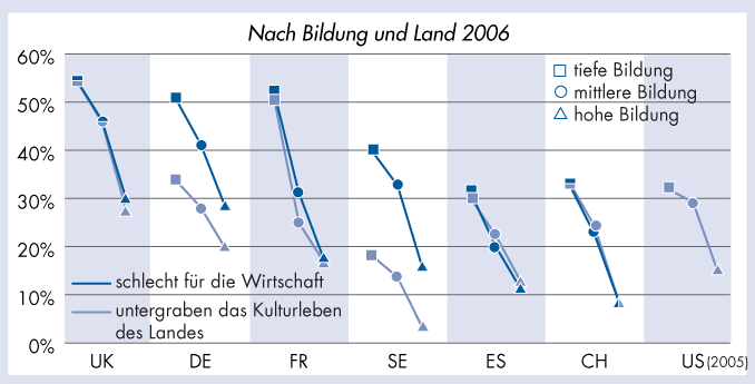 «Zuwanderer sind schlecht für die Wirtschaft» und «Zuwanderer untergraben das Kulturleben des Landes» - Nach Bildung und Land 2006 |