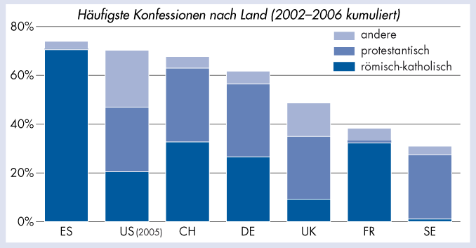Häufigste Konfessionen nach Land (2002–2006 kumuliert)