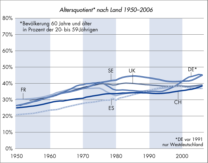 Altersquotient nach Land 1950–2006