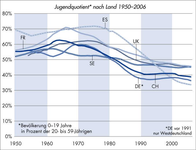 Jugendquotient nach Land 1950–2006