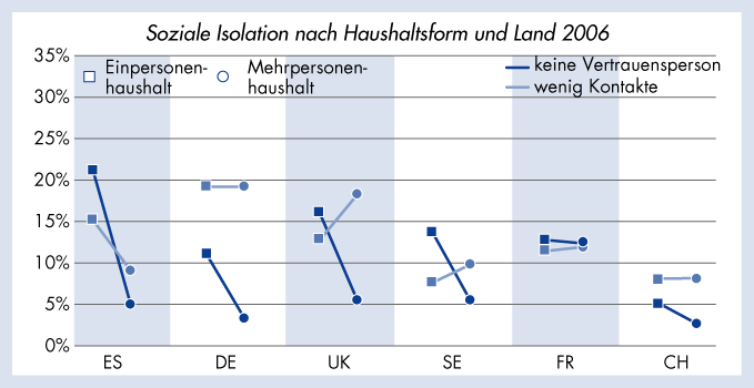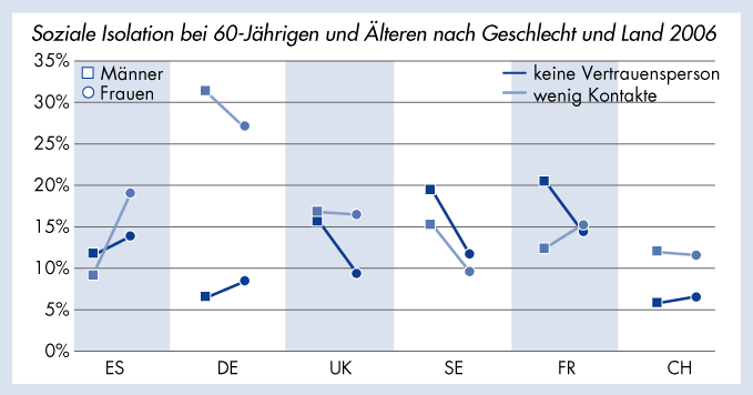 Soziale Isolation bei 60-Jährigen und Älteren nach Geschlecht und Land 2006