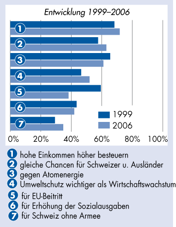 | Politische Überzeugungen in der Schweiz - Entwicklung 1999–2006 |