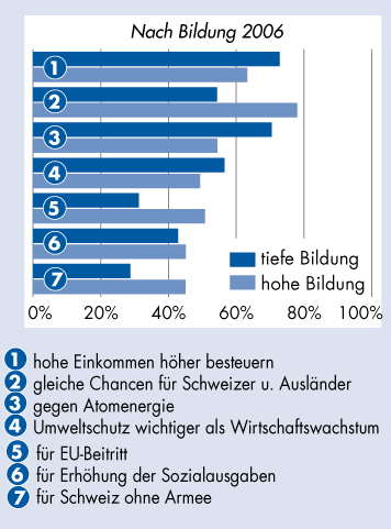 Politische Überzeugungen in der Schweiz - Nach Bildung 2006 |