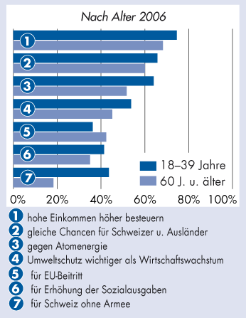 Politische Überzeugungen in der Schweiz - Nach Alter 2006 |