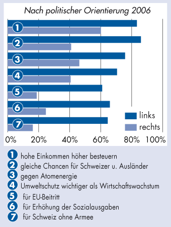 Politische Überzeugungen in der Schweiz - Nach politischer Orientierung 2006 |