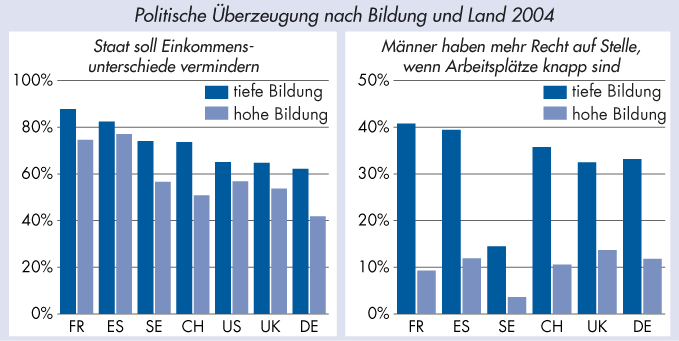 | Politische Überzeugungen nach Bildung und Land 2004 |