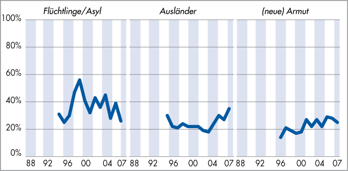 «Welches sind für Sie die fünf grössten Probleme in der Schweiz?» 1988–2007 - Flüchtlinge/Asyl, Ausländer, (neue) Armut |