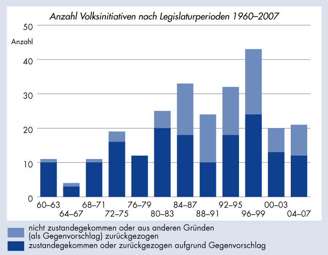 Anzahl Volksinitiativen nach Legislaturperioden 1960–2007