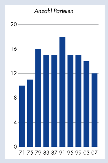 Parteien in der Schweiz: Nationalratswahlen 1971–2007 - Anzahl Parteien |