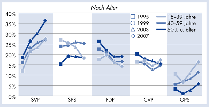 Wählerschaft der Parteien 1995–2007, nach Alter