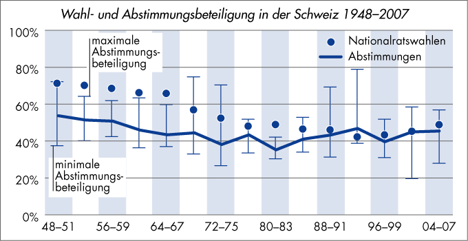 Wahl- und Abstimmungsbeteiligung in der Schweiz 1948–2007