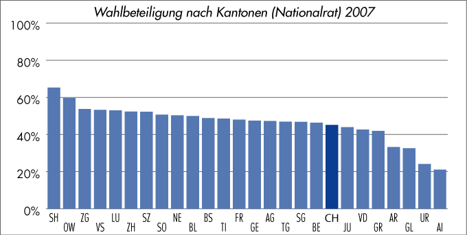 Wahlbeteiligung nach Kantonen (Nationalrat) 2007