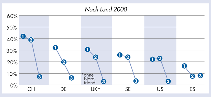 | Umweltpolitisches Engagement in den letzten fünf Jahren in Prozent – Nach Land 2000 |