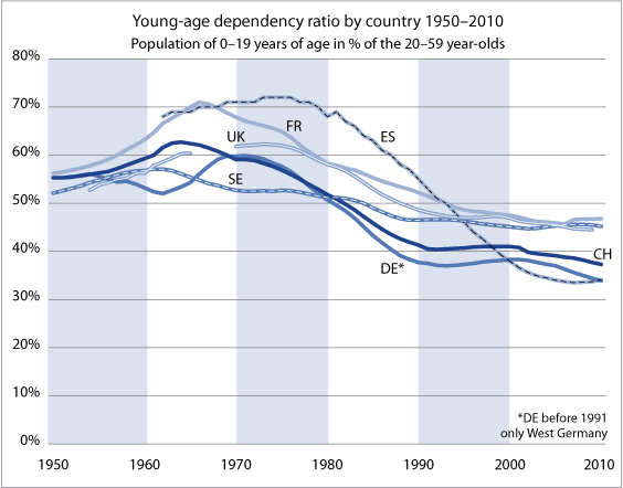 Young-age dependency ratio: population of 0-19 years of age in % of the 20-59-year-olds.