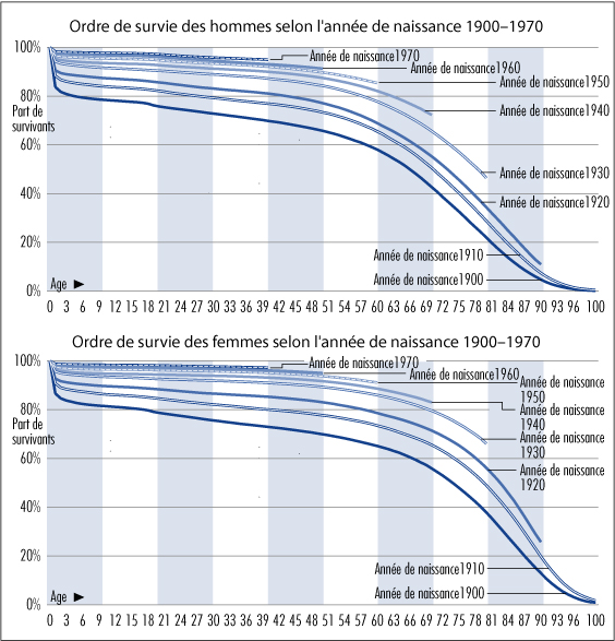 Ordre de survie selon le sexe et l’année de naissance 1900-1970