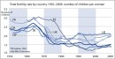 Total fertility rate: average number of children per woman, if the age-related fertility rates of a specific calendar year until the end of the woman’s child-bearing age remain constant.