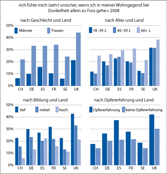 Gefühl von Unsicherheit nach Geschlecht, Alter, Bildung und Land 2008