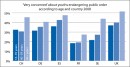 Question posée: « Dans quelle mesure vous sentez-vous préoccupé par l’ampleur des délits commis à l’heure actuelle par de jeunes adultes (dans la vingtaine) ? » Échelle de 0 (pas du tout préoccupé) à 10 (extrêmement préoccupé) ; sont mentionnées les parts des valeurs de 8 à 10.