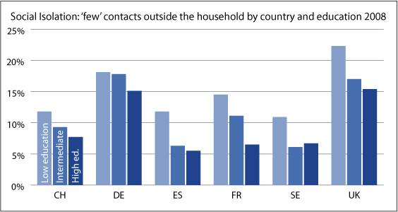 Social isolation by country and education 2008