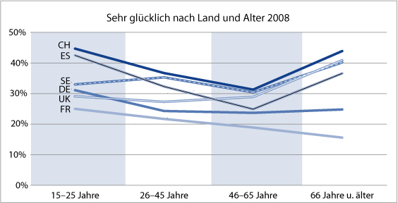 Lebenszufriedenheit nach Land und Alter 2008
