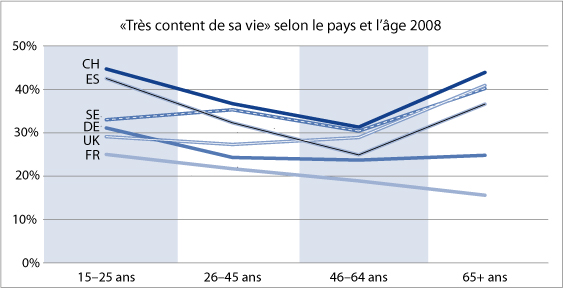 Satisfaction par rapport à la vie selon le pays et l’âge 2008