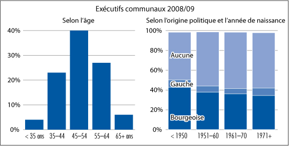 Exécutifs communaux 2008/09: selon l’âge et l’origine politique