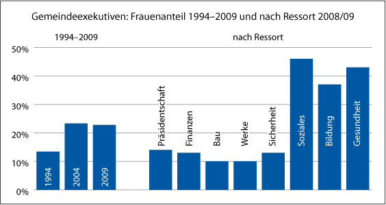 Gemeindeexekutiven 2008/09: Frauenanteil nach Ressort