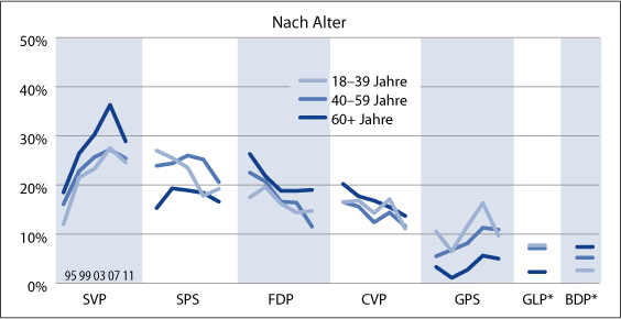 Wählerschaft der Parteien nach Alter 1995-2011