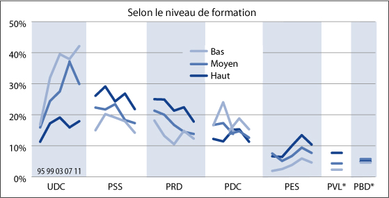 Source : Selects 1995, 1999, 2003, 2007 et 2011. Les données sont pondérées comme d’ordinaire, mais également en tenant compte des résultats officiels des élections.