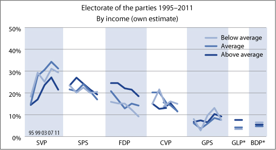 Source: Selects 1995, 1999, 2003, 2007 and 2011. Apart from usual weightings, data are weighted according to the official election result.