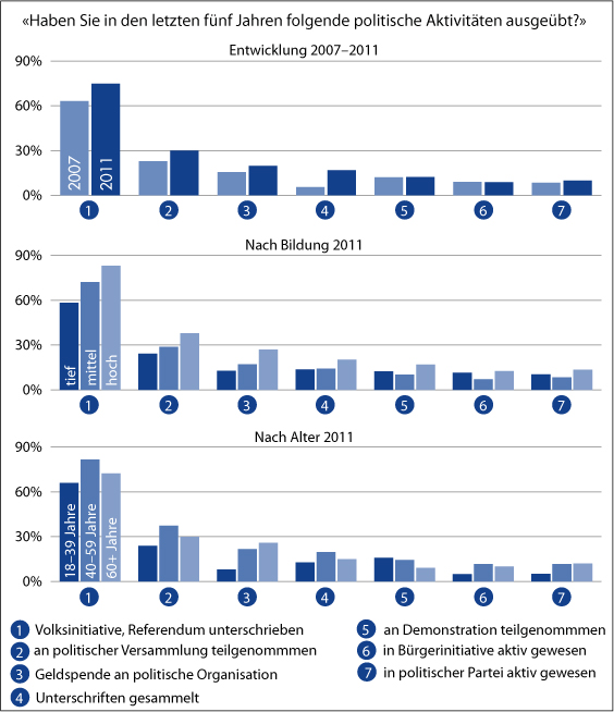 Politische Aktivitäten nach Bildung und Alter 2007-2011