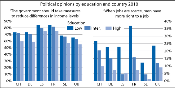 Question wording: “Switzerland should take measures to reduce differences in income.” Percentages correspond to the shares of respondents who agree.