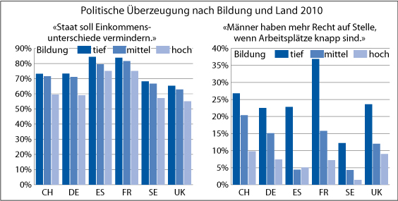 Fragestellung: «Der Staat sollte Massnahmen ergreifen, um die Einkommensunterschiede zu vermindern. Angegeben sind die Anteile der Befragten, die der Aussage zustimmen.