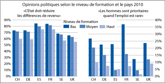 Niveaux de formation : bas : ISCED 0–2 (sans formation post-obligatoire, formation élémentaire), moyen : ISCED 3–4 (apprentissage professionnel, maturité), haut : ISCED 5–6 (haute école spécialisée, université).