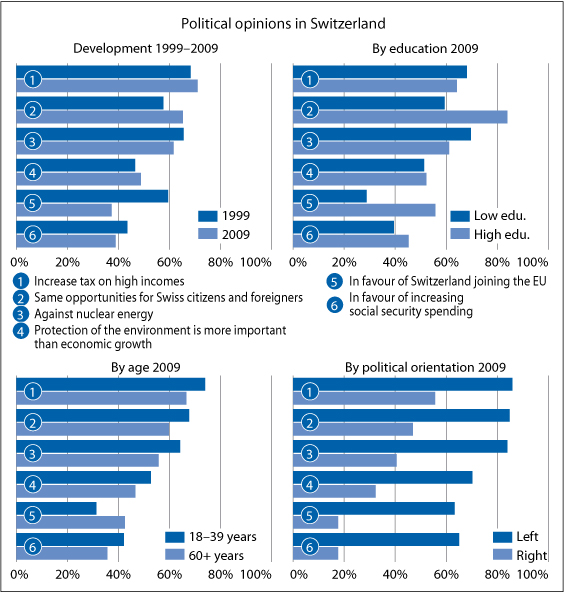 Question wording: “Are you in favour of raising or lowering taxes on high income?” Percentages correspond to the shares of respondents who are in favour of an increase.