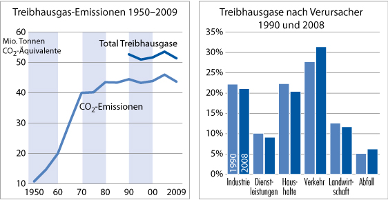 CO2-Äquivalenz: Summe aller Treibhausgase, Nicht-CO2-Emissionen wurden ihrem globalen Erwärmungspotenzial entsprechend umgerechnet (IPCC 1999).