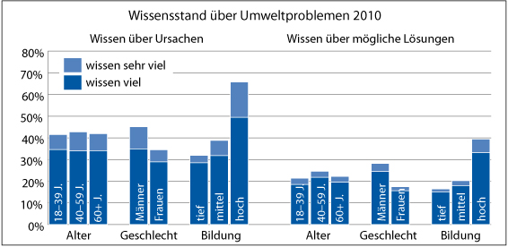 Fragestellung: «Was meinen Sie: Wie viel wissen Sie über die Ursachen von diesen Umweltproblemen? Und was meinen Sie: Wie viel wissen Sie über mögliche Lösungen für diese Umweltprobleme?»