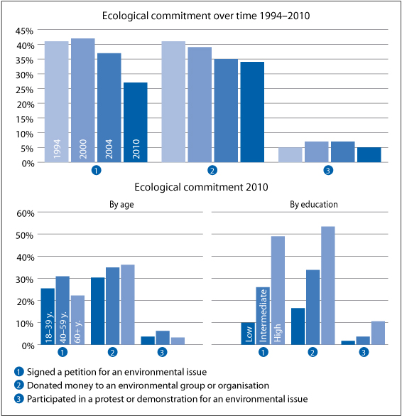 Question wording: “In the last five years, have you… 1) …signed a petition for an environmental issue? 2) …donated money to an environmental group or organisation? 3) …participated in a protest or demonstration for an environmental issue?”