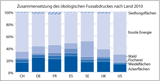 Zusammensetzung des ökologischen Fussabdruckes nach Land 2010