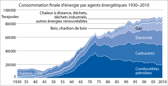 Consommation finale d’énergie par agent énergétique 1930-2010