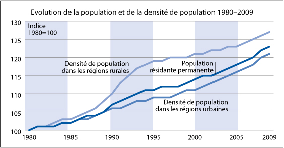 Densité de la population: indice 1980 = 100
