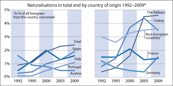 Foreigners with duration of stay over 25 years in total and by country of origin 1991-2009