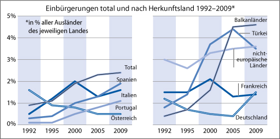 Einbürgerungen Total und nach Herkunftsland 1992-2009