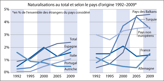 Naturalisations au total et selon le pays d’origine 1992-2009