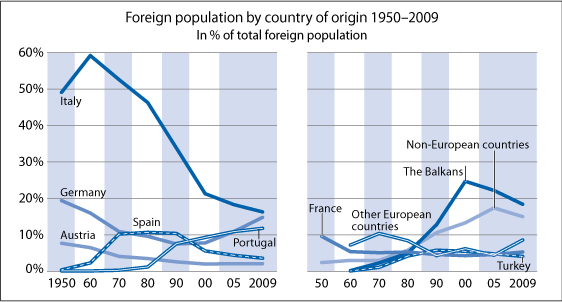 Foreign population by country of origin 1950-2009, in % of total foreign population