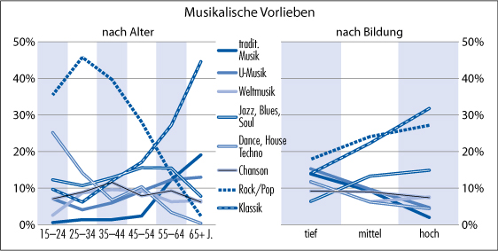 Musikalische Vorlieben nach Alter und Bildung 2008
